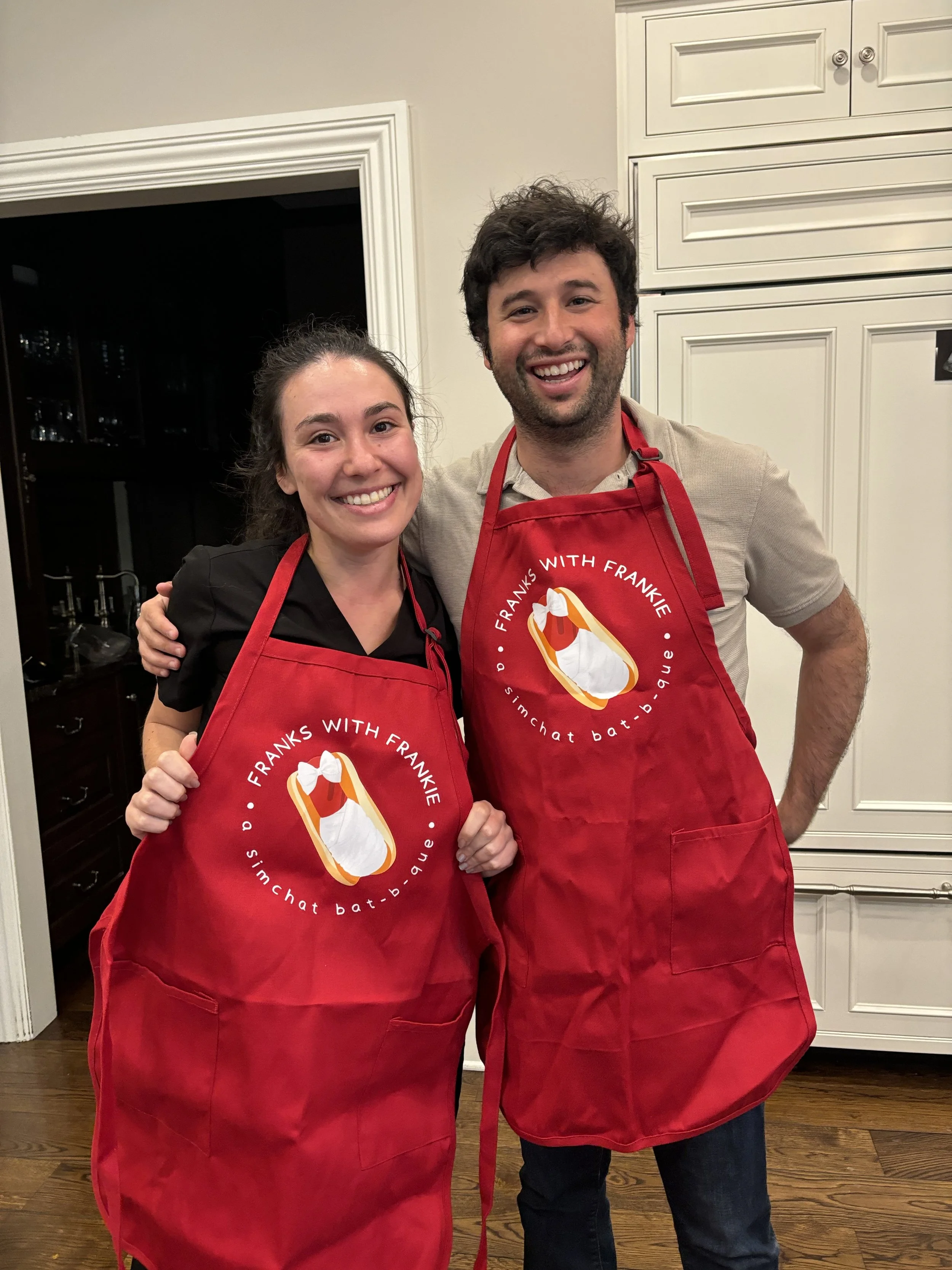 Katie commissioned me to make a logo for her niece’s Simchat Bat which was a family BBQ. She knew they wanted to use “Franks with Frankie” and came to me to bring their vision to life. We went through multiple iterations of the hot dog baby with different icons and colors and ultimately landed on the adorable swaddled hot dog here! Katie’s family used the logo and ordered aprons for everyone which turned out SO cute!